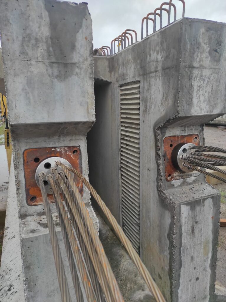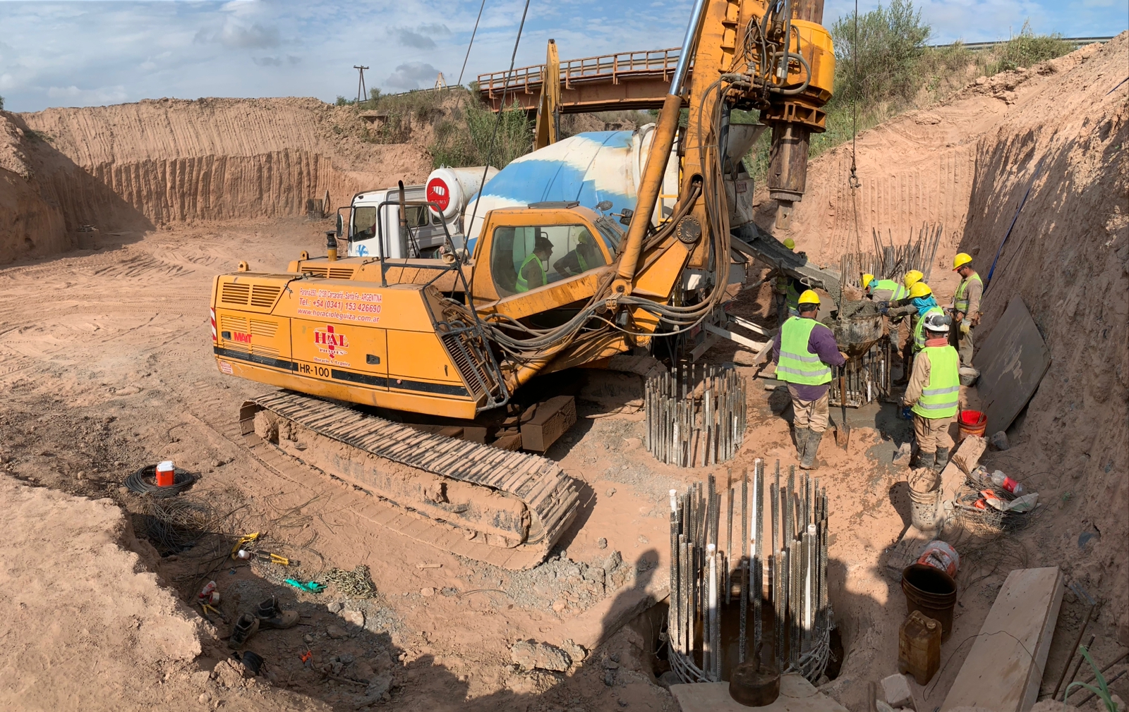 Línea Ferrocarril General Belgrano Tucumán – Puente Ferroviario de 32 metros de luz en zona sísmica, sobre estribos de contrafuertes y pantalla frontal. Vigas pretensadas con tablero de hormigón armado.